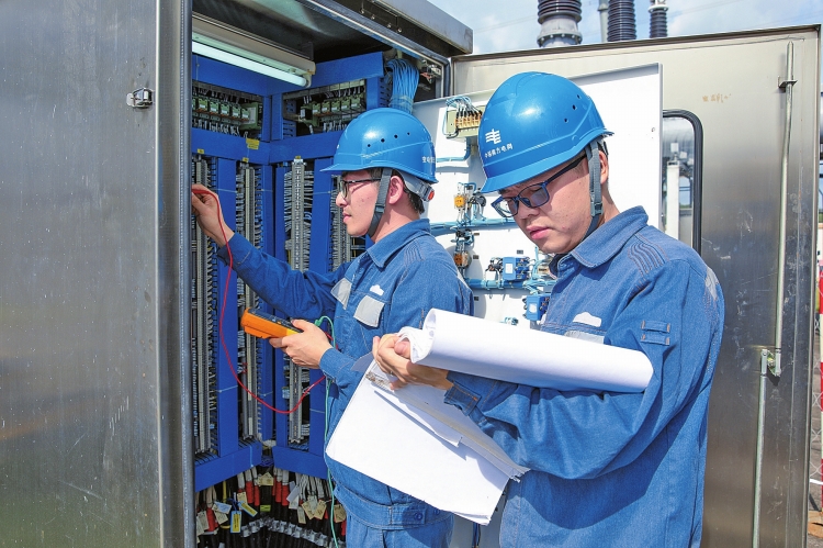 为推动阳江南鹏岛海优势电接入电网体系工程,广东电网公司阳江供电局运维人员在500千伏蝶岭变电站对高压场所二次回路进行查验。