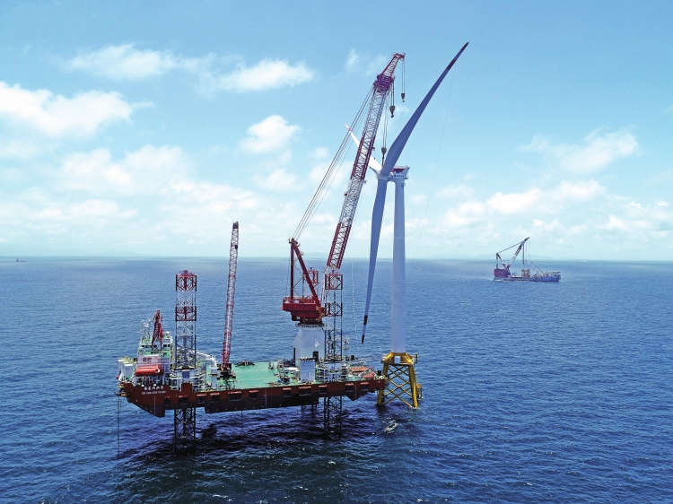 本年6月27日,阳江南鹏岛海优势电项目顺畅结束首台风机叶轮吊装。