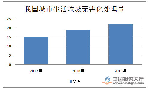 根据国家统计局数据显示,2019年全年我国城市日子废物无害化处理量22.28亿吨。其间,卫生填埋处理量为12.75亿吨,占57.23%;燃烧处理量为8.97亿吨,占40.26%;其他处理方法处理量为0.56亿吨,占2.51%。