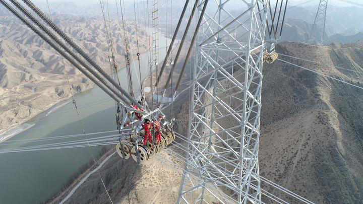 12月25日,世界最牛特高压线路在浙江电网工人的精心施工下跨越黄河——新疆昌吉-安徽古泉±1100千伏特高压直流输电线路是目前全球电网中电压等级最高、输电距离最远、输电容量最大、技术水平最先进的特高压输电线路。