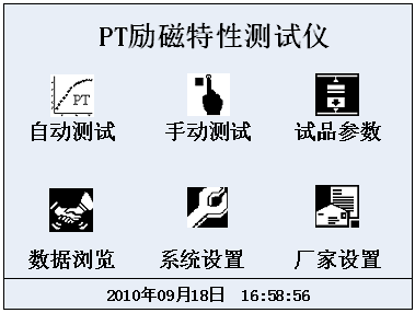 1) 自动测试:在该测试项中可以进行按预定设置的自动励磁特性测试。