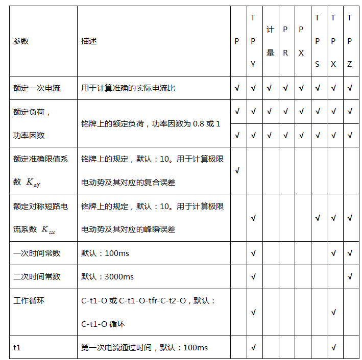 (3)级别:被测绕组的级别,对于CT,有P、TPY、计量、PR、PX、TPS、TPX、TPZ等8个选项。
