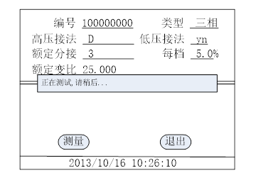 在上图中,光标选择“测量”,按确认键进入如下变比测试自动升压页面: