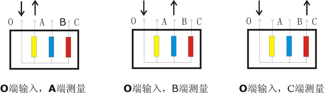 扫频信号输入阻抗接于中性点O,扫频信号输出阻抗分别接在A、B、C上。这种测量方法,可以将非测量相上接收到的干扰信号由信号发生器上的低阻抗来吸收。如图3所示。