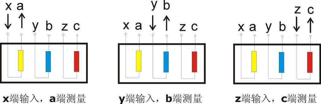 输入阻抗接于x,输出阻抗接在a相,代表a相。