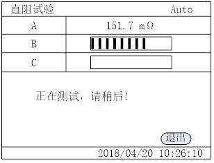 等待三相全部测试完成后显示如下图所示的直阻测试结果: