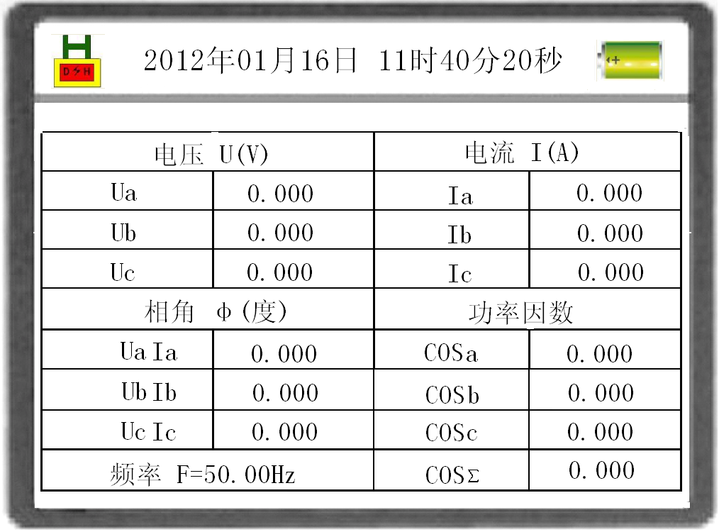 屏幕显示当前时刻向量图并自动锁存;此画面下屏幕显示接线判别结果。向量图仅反映电压与电流之间的相位关系,不反应幅值关系。