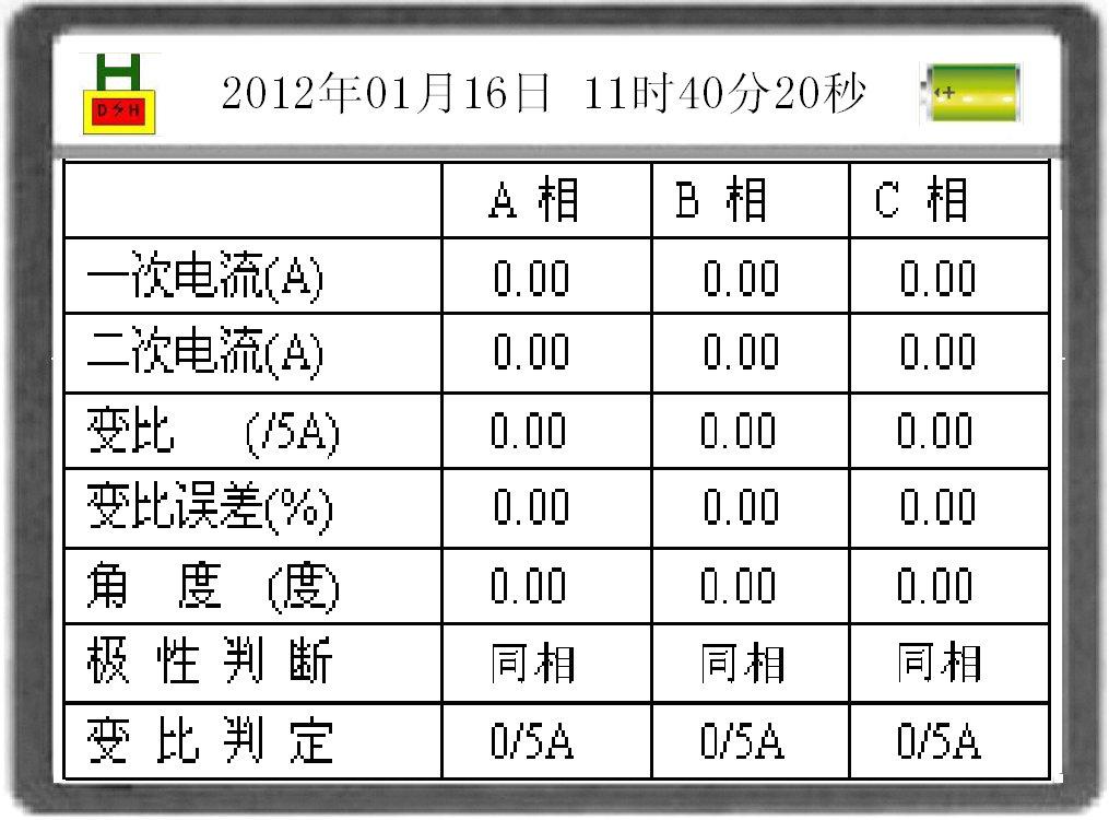 仪器对当前各互感器变比进行计算并显示变比值和极性。“+”代表极性相同,“-”代表极性相反。