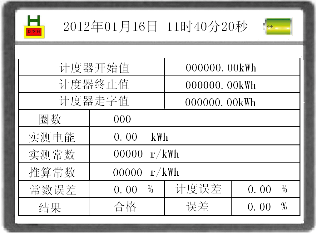 当电能累积足够时,输入电能表结束值,并按“确认”键,仪器自动计算出电能表走字盘的电能。与仪器累积的电能进行校核,屏幕下方显示校核结果。
