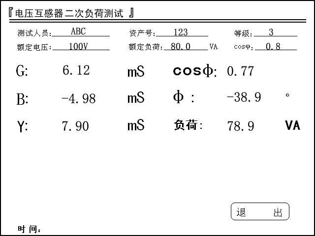 进入该界面就可以测试电压互感器负荷。