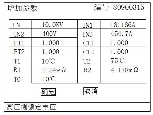 通过方向键选择预修改其参数的编号,然后按OK键进入试品参数修改页面,参数修改页面与图5相同。