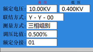 当光标在额定电压、调压比值上时,按“确定”按键,进入按位设置,再次按“确定”,或者按“取消”按键退出按位设置。