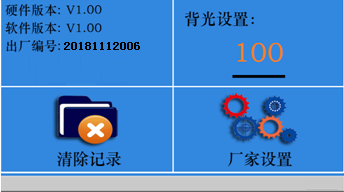 开机界面,光标定位到系统设置,按确认键进入,光标在背光设置菜单项时,上下方向键可改变液晶对比度,光标在清除记录菜单项时,按下确认键可清除存储数据。