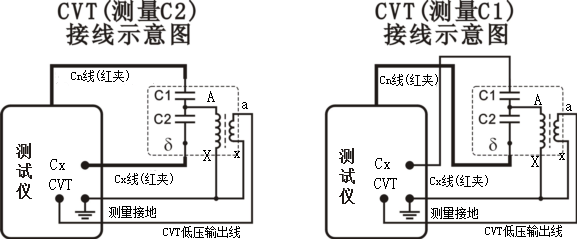 (3)注意:只有在CVT测试模式下测C1、C2;在正接或反接法下会损坏CVT!!!