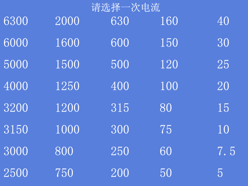 (1-1)显示,选择对应互感器的额定一次电流;