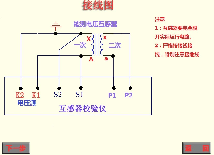 ④返 回:退出到上一显示界面(电流互感器测试功能选择界面)。
