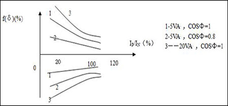 电压互感器的误差与二次负荷的关系称为负荷特性。互感器校验装置负荷误差是由于负荷电流在一次及二次线圈电阻和漏电抗上的电压降产生的。如果电压互感器空载下的比值差f0,相位差δ0已测定,再测量它在额定负荷ZE,COSФ=1时的比值差和相位差δe,就可以通过计算得到任意负载Zb下的比值差f和相位差δ。