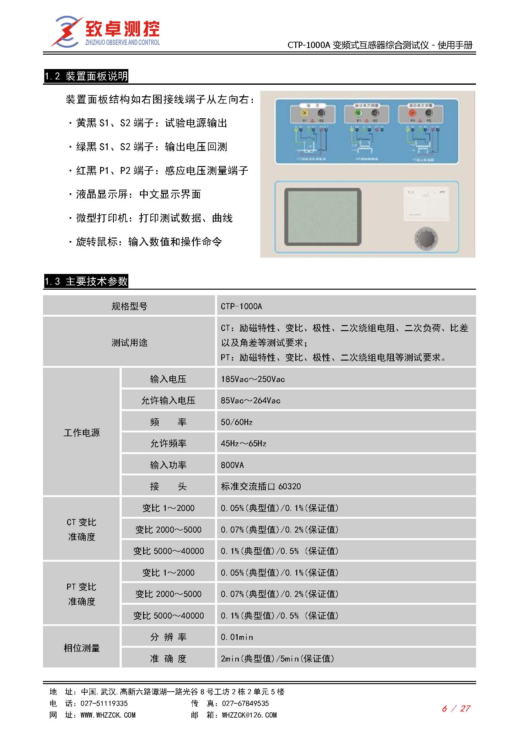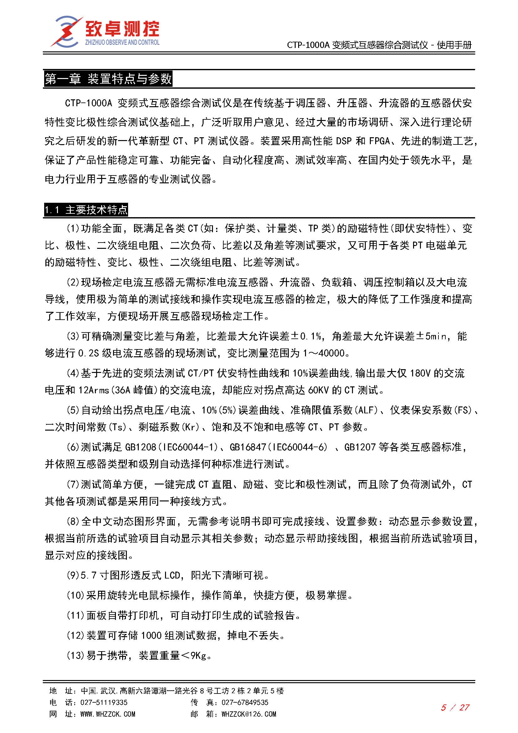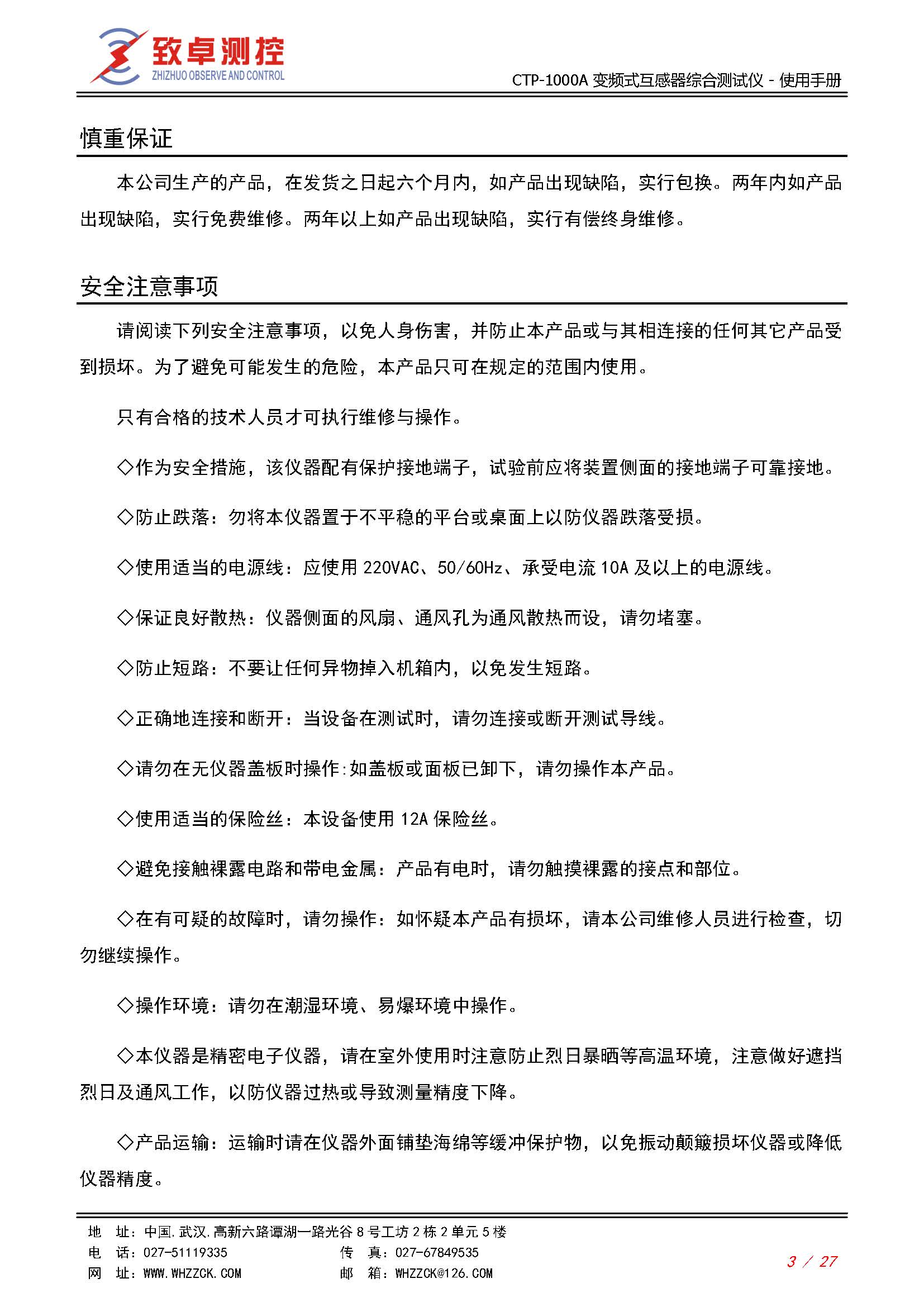 CTP-1000A 变频式互感器综合测试仪使用说明书