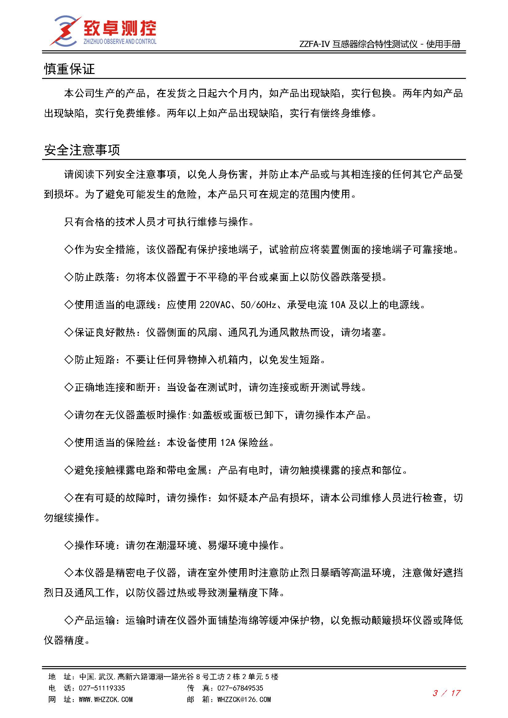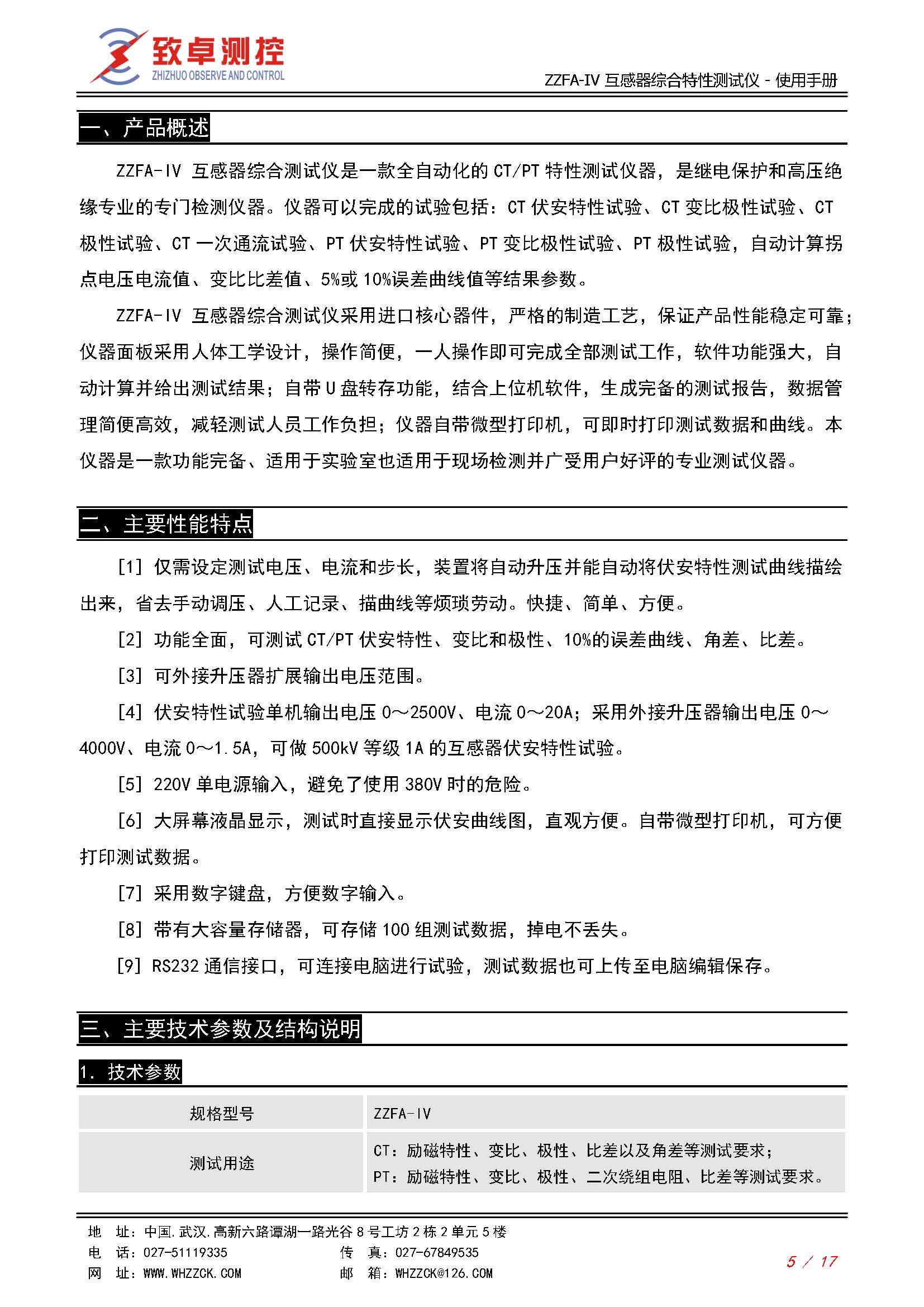 ZZFA-IV 互感器伏安特性综合测试仪使用说明书