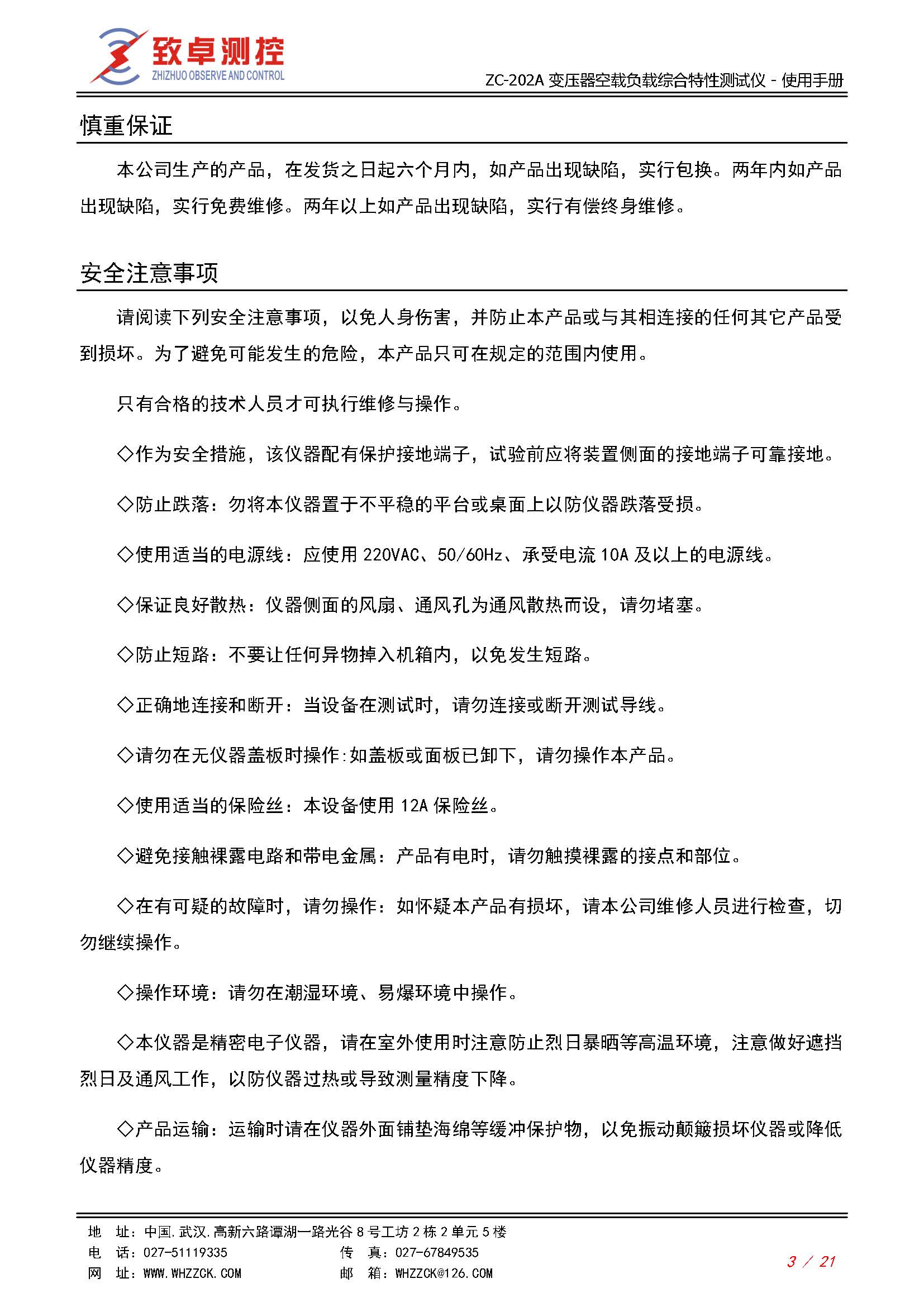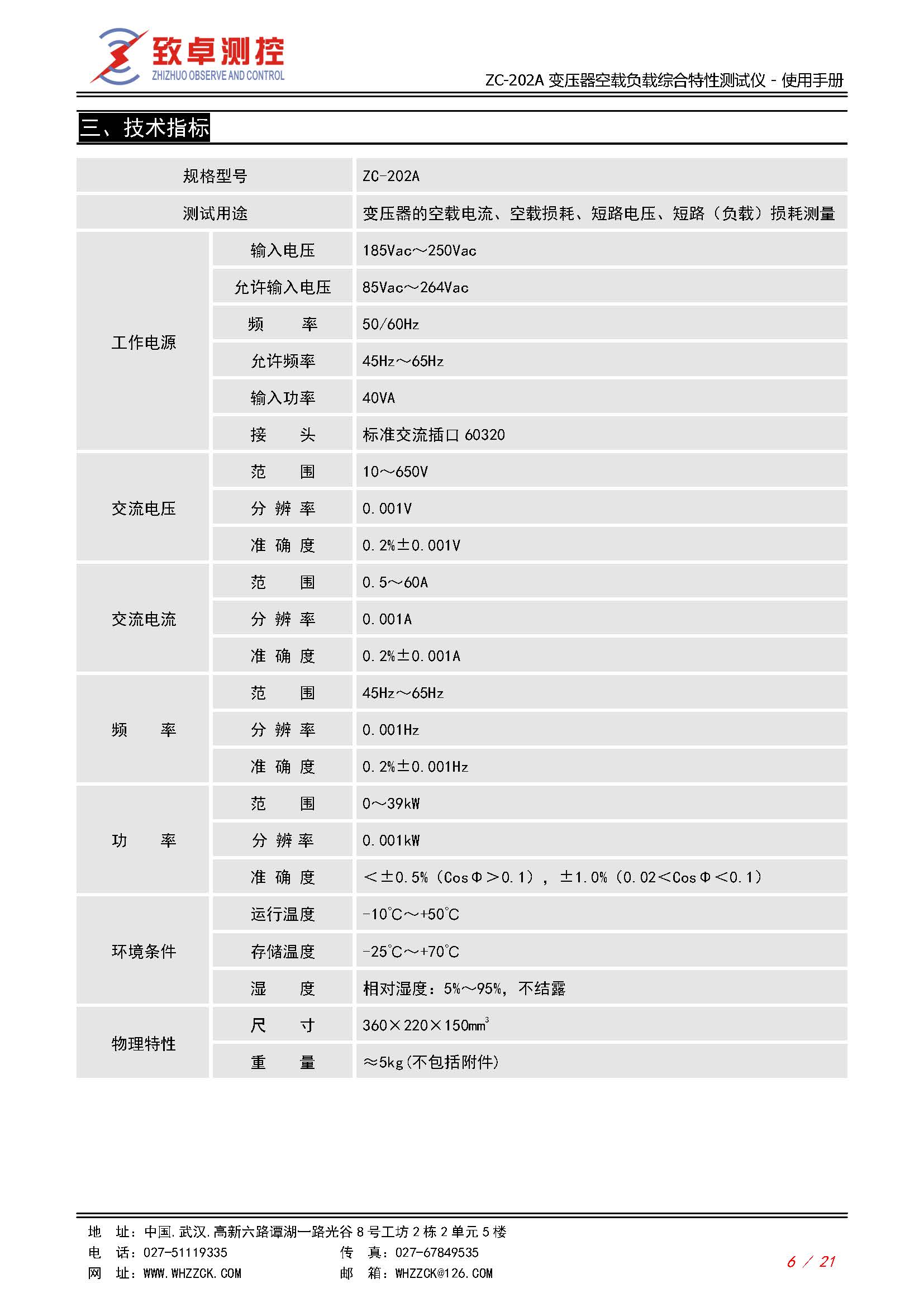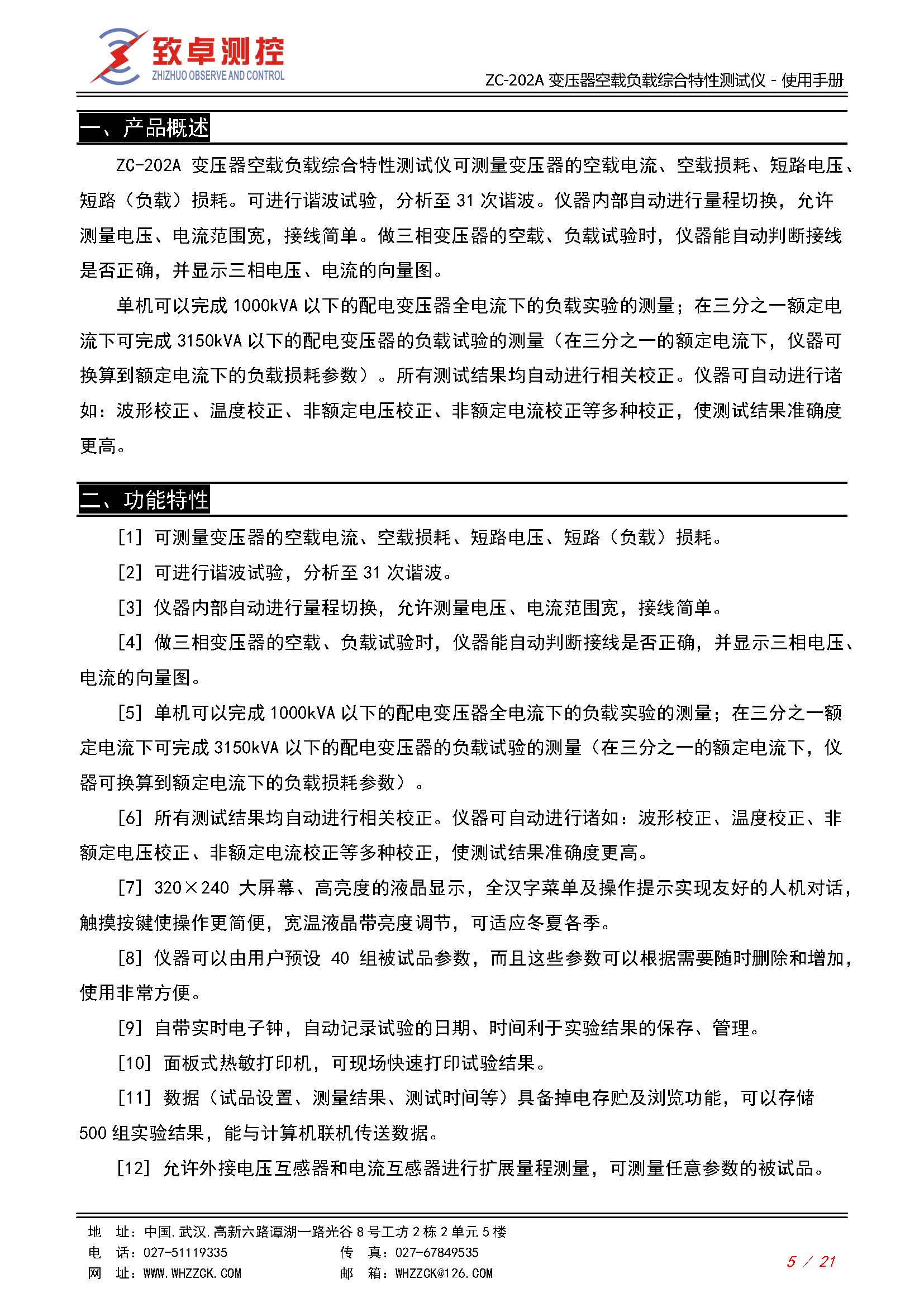 ZC-202A 变压器空载负载综合特性测试仪使用说明书
