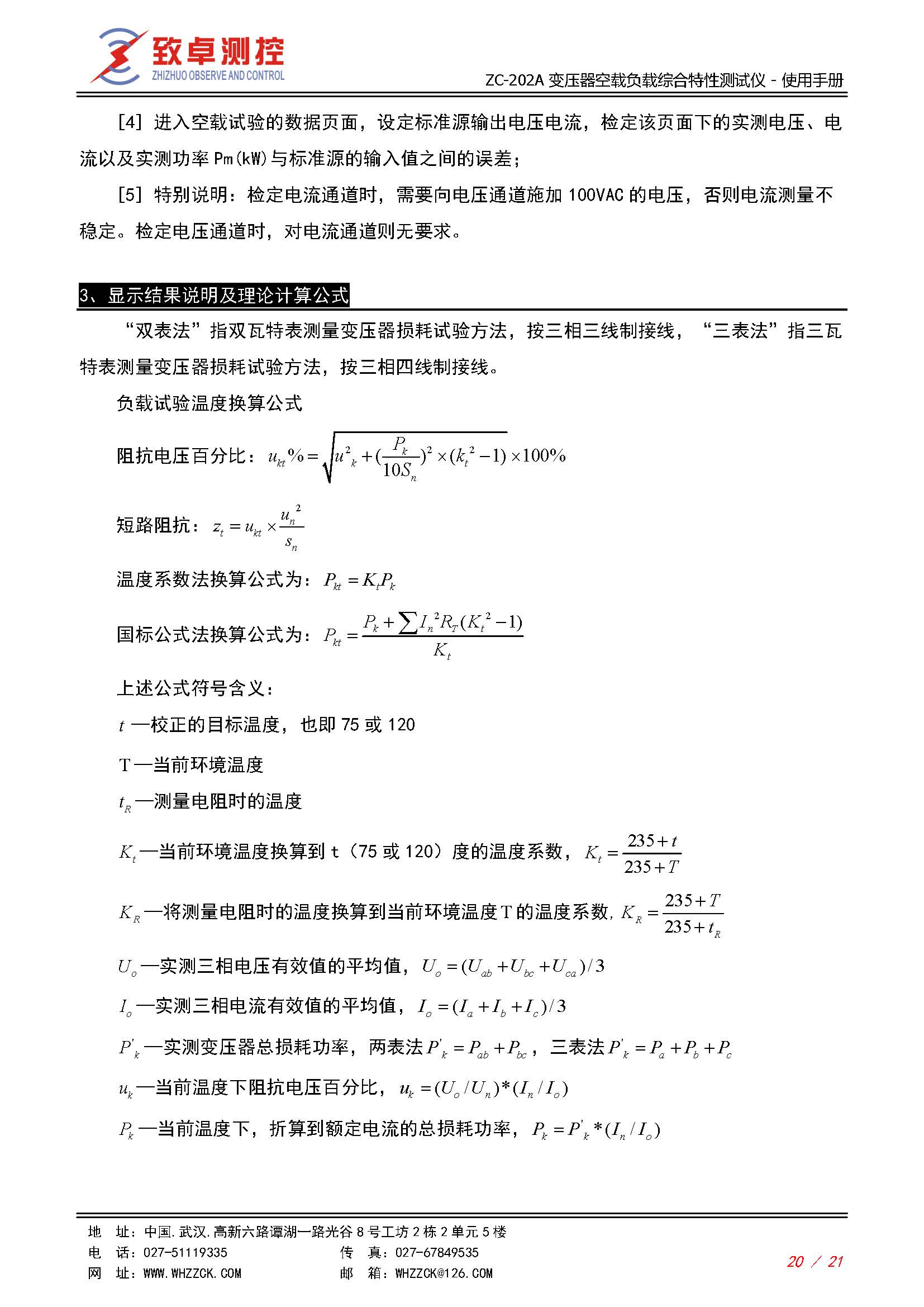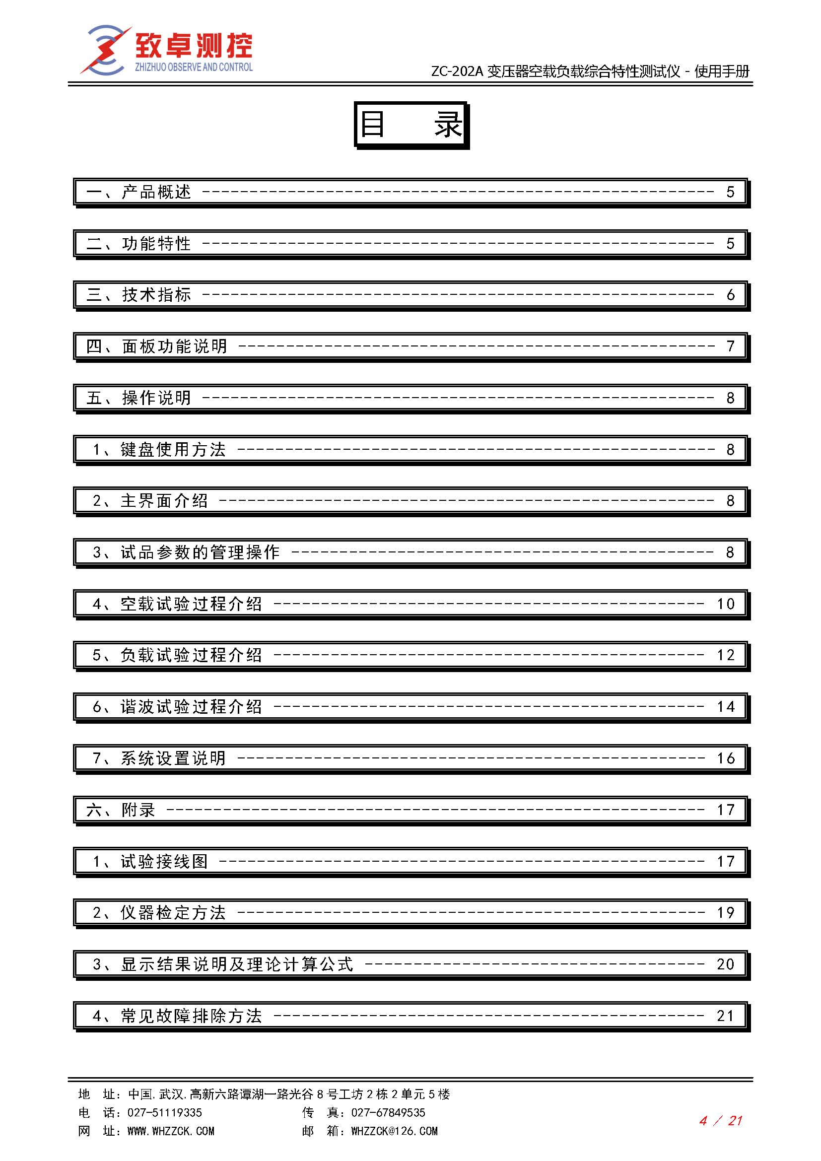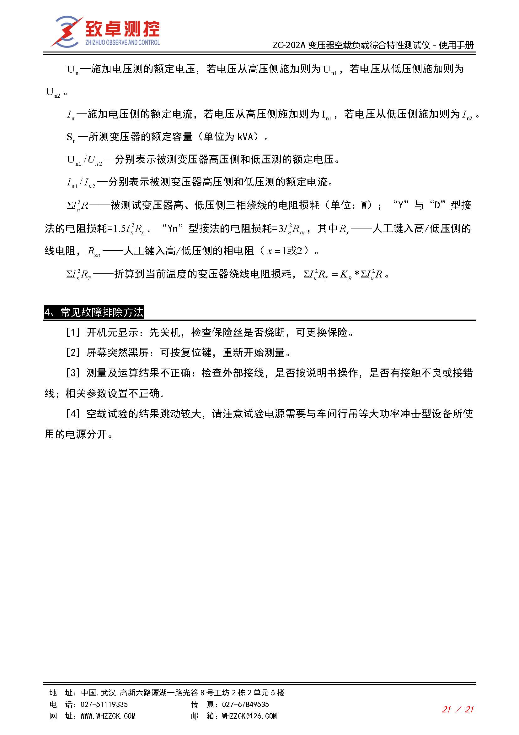 ZC-202A 变压器空载负载综合特性测试仪使用说明书